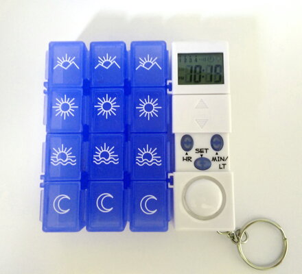 - Digitale Einstellung des akustischen Alarms für Erinnerung an Arzneimittel-Einnahme bis zu 4 Mal am Tag